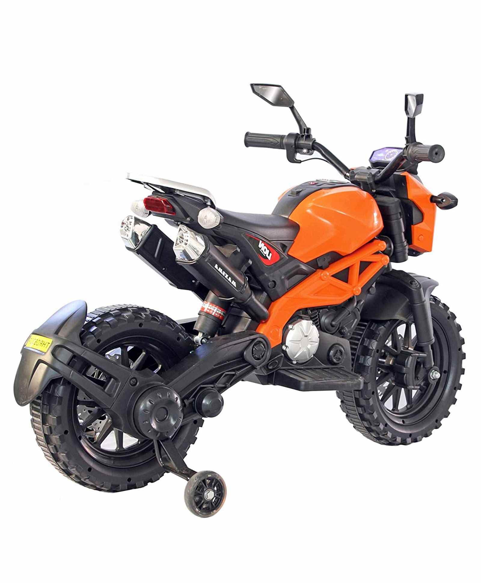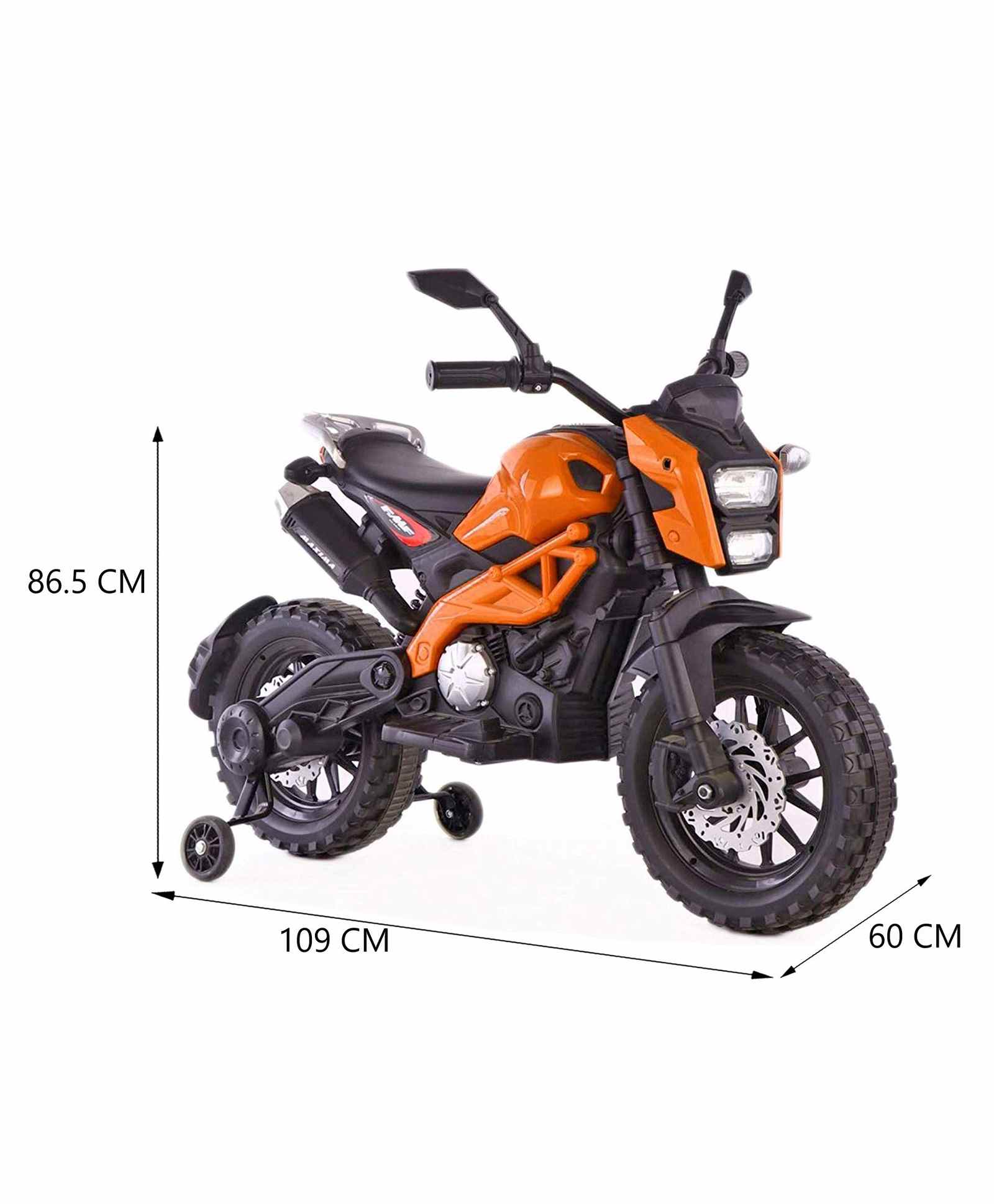 This fancy ride on bike brought to you by Wheel Power is safe, easy to operate with key and lets your kid build a happy memory. Made from durable plastic material, this ride on car features functions such as LED light in engine, wheels, indicators & in meter, wide and spacious seat, two big wheels, foot rest, etc.